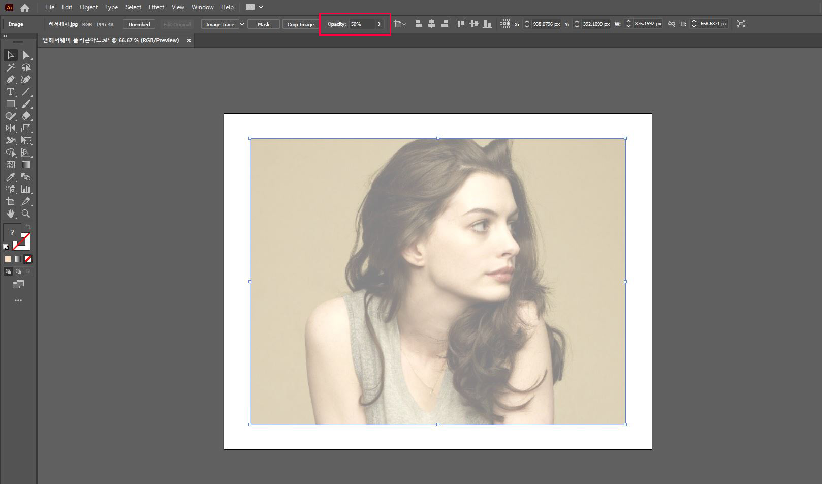 이미지는 투명도 50%로 낮춰주시고 (상단 빨간 박스에서 조절),