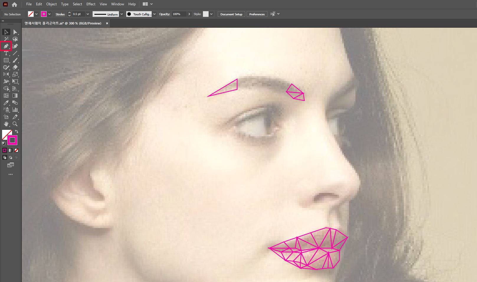 기존의 이미지에 다각형의 선을 하나씩 따서 작업한 후