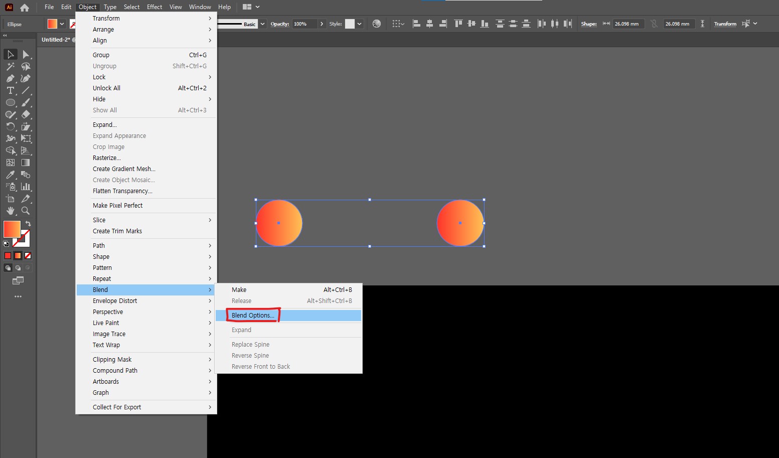 Object(오브젝트) >> Blend(블렌드) >> Blend Options(블렌드 옵션)