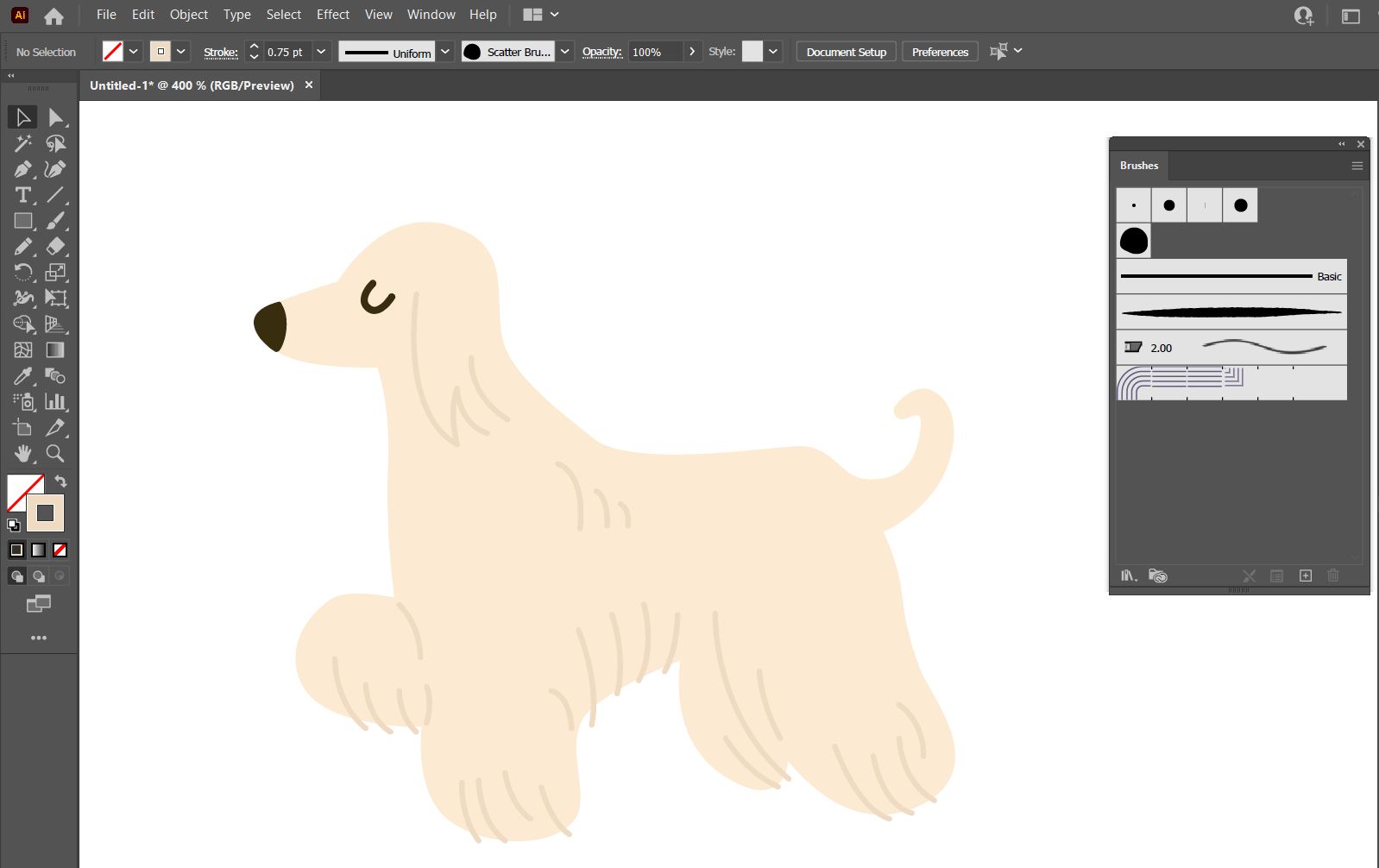위 도형과 같이 강아지를 클릭 후 브러쉬를 눌러주면,