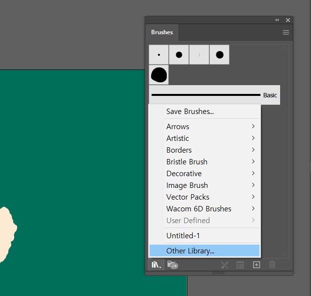 뉴 파일에서 저장한 브러쉬를 꺼낼 땐,
